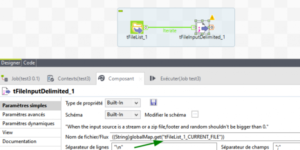 An example will be more telling: in the screenshot below, there is a tFileList_1 linked to a tFileInputDelimited_1. This last component uses as source "((String)globalMap.get("tFileList_1_CURRENT_FILE"))" to iterate over all the files in tFileList_1.