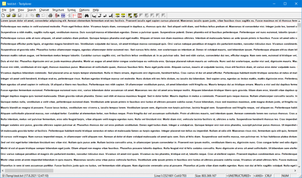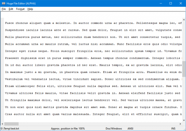 Test file: opened immediately, search found in 18 seconds (note that the last character of the file is not displayed).